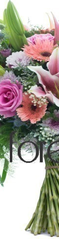A feminine floral arrangement for ladies who adore rose coloured hues. Our Pink Promise arrangement would make a lovely birthday, wedding anniversary, or Mother's Day gift. Fresh and fabulous, it features 4 pale pink roses, 4 gerberas, 4 pink lilies, pink chrysanthemum sprays, and a sprinkling of baby-breath gypsophila.